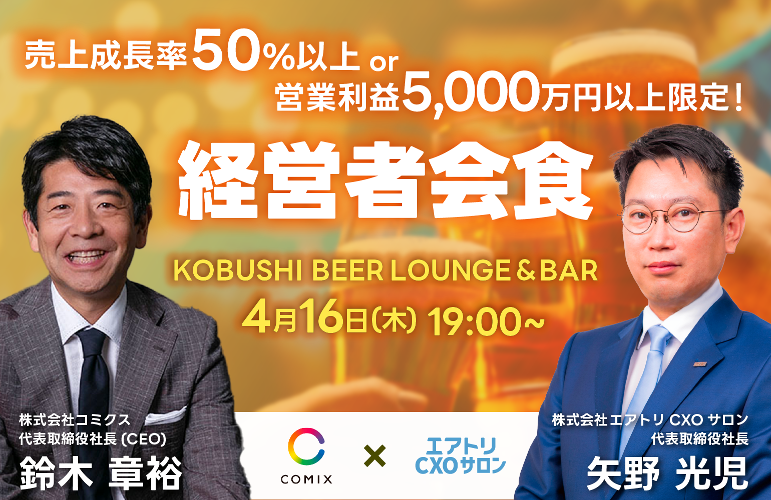 売上成長率50%以上 or 営業利益5,000万円以上の経営者限定会食