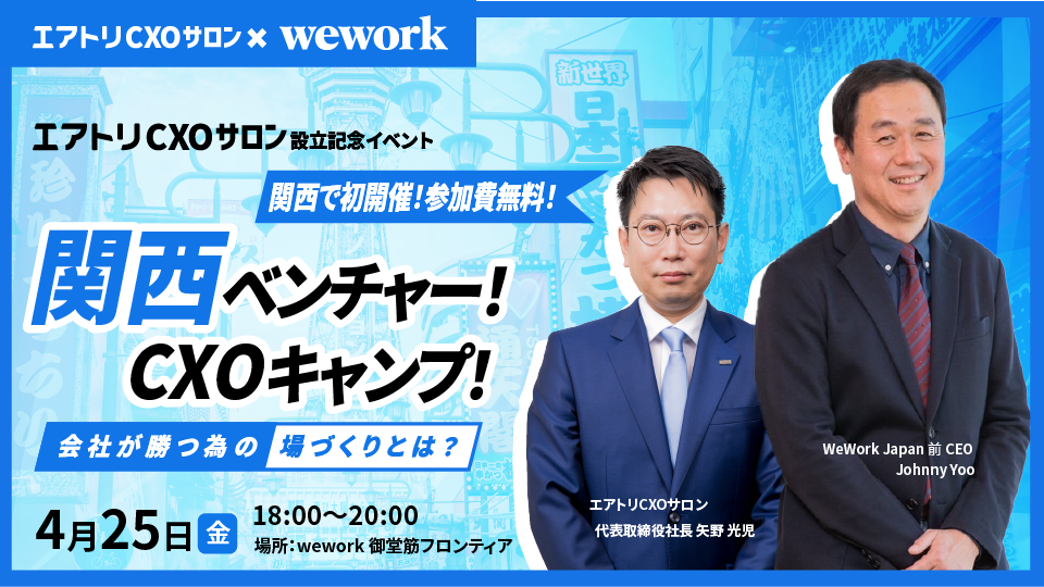 株式会社エアトリCXOサロン 代表取締役社長 矢野 光児 ✕ WeWork Japan 前代表取締役社長 兼 CEO ジョニー・ユー(ソフトバンク 投資事業 前役員)
