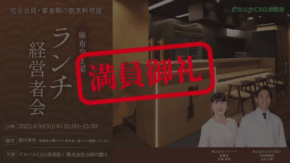 山田家で営み30年、会員制割烹「麻布やま屋」にて、着座スタイルでのランチ経営者交流会を少人数に限定して開催いたします。